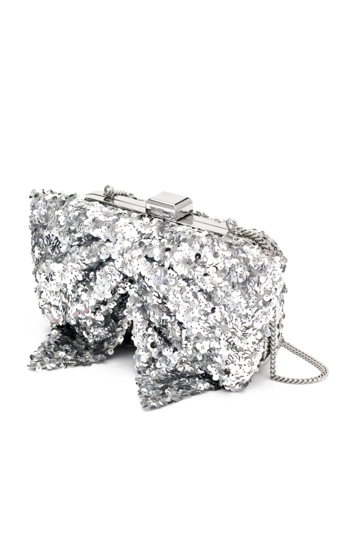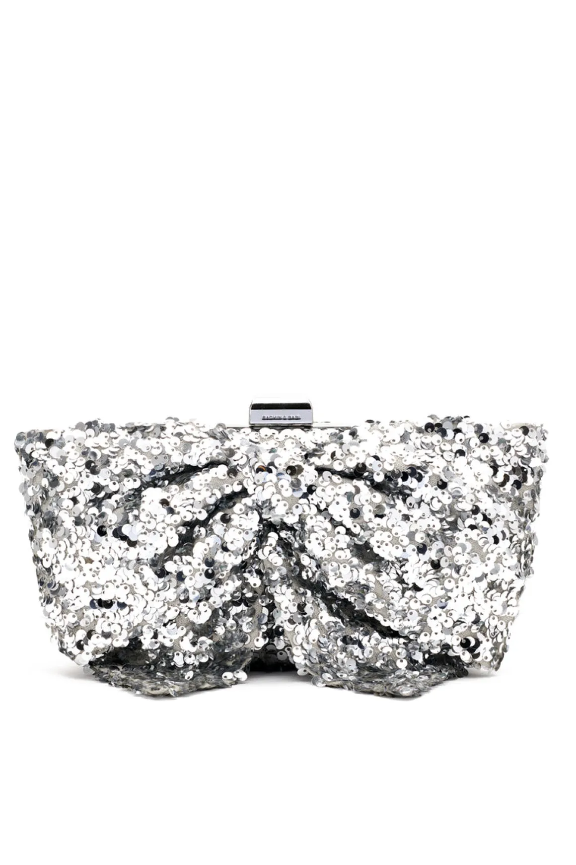 Prepare to fall in love with the Cupid’s Clutch – our clever way of avoiding “the bow” in the room. A fully framed convertible clutch with a silver finish, an interior pocket, and a removable chain with a top closure, she is sure to make an entrance. Its statement bow detailing combined with its allover silver sequins makes this clutch a perfect choice for your next night out.