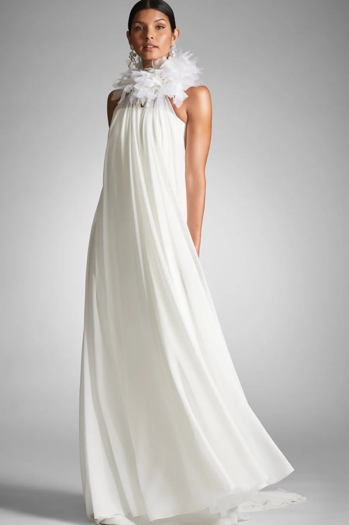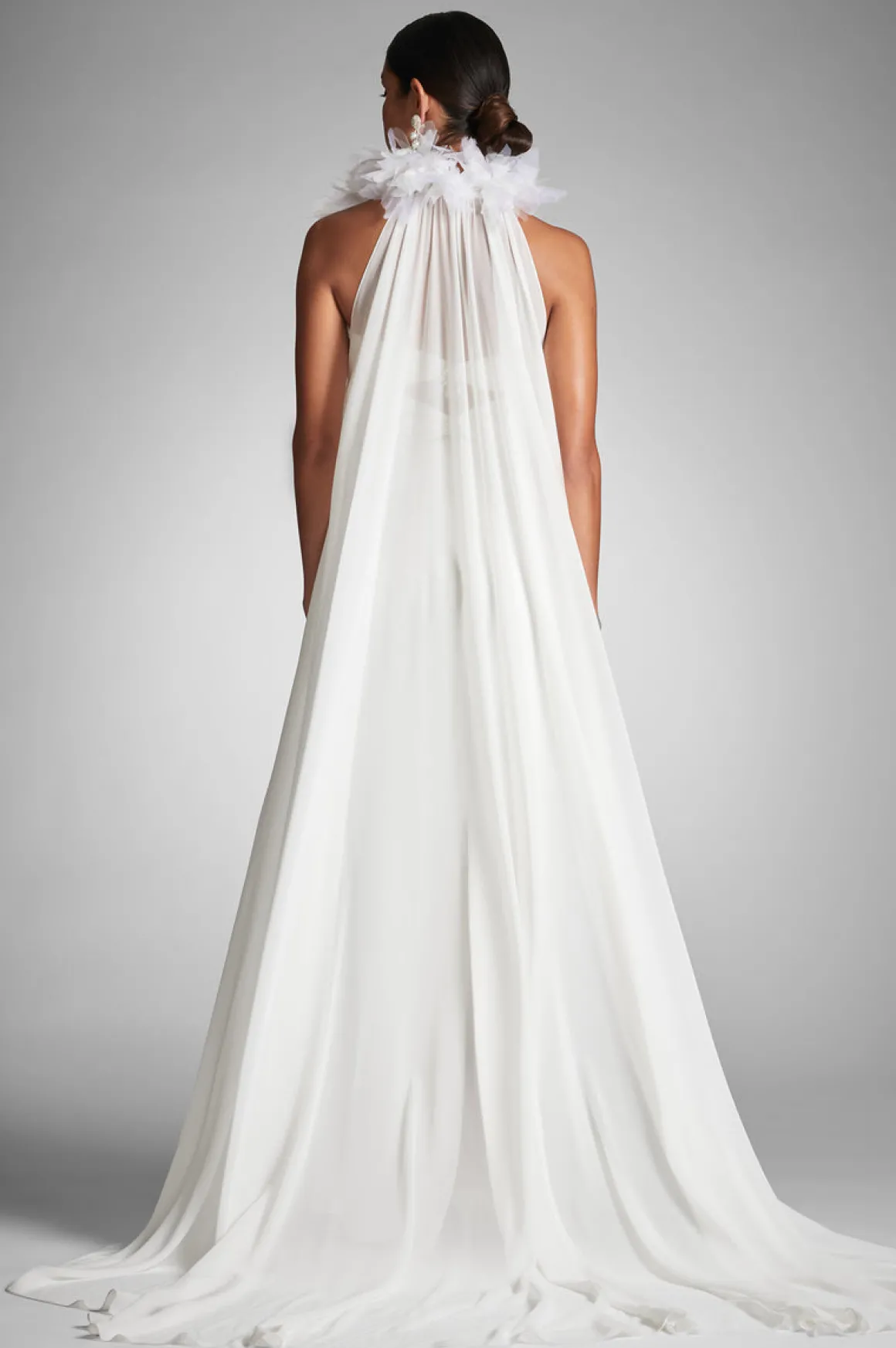 Achieve a unique bridal look with the Aphrodite Overlay in Ivory. This classic overlay is ideal for wearing on top of your gown for extra coverage and a special touch. The lightweight fabric delicately drapes and adds a romantic flair to your special day.