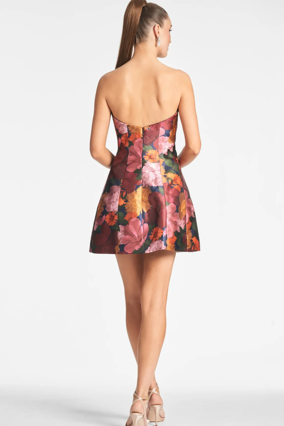 She is a sculpture articulated in bella bouquet! This ultimate little dress in bella bouquet is engineered to keep her perfect bell shape. Boning at the bodice is what allows her to defy gravity. Embroidered flowers kiss the top of the dress disappearing into the bodice. We spent many hours on this frock to make sure she is exactly what you see on the site.