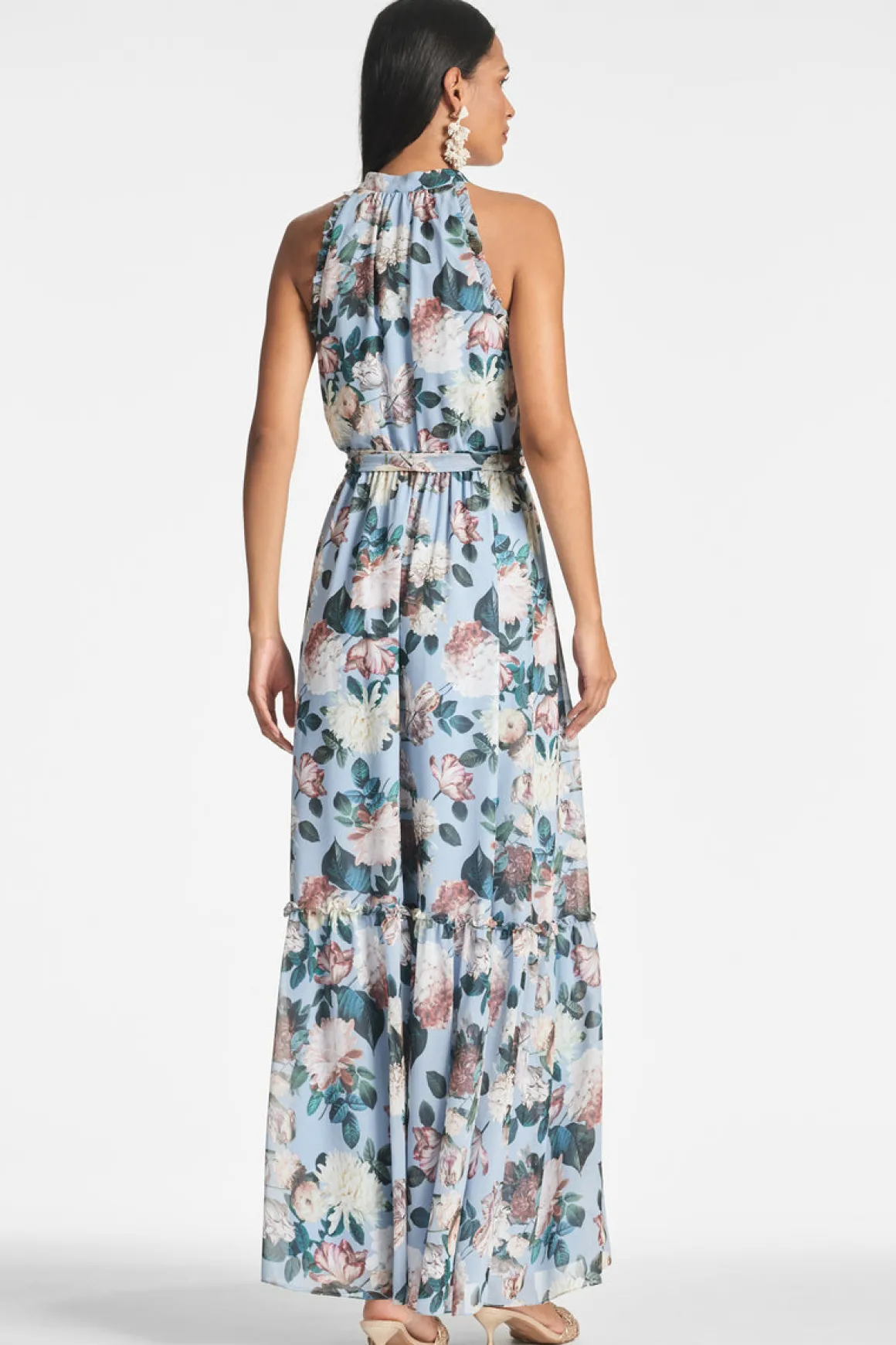Blair is a perennial maxi silhouette. A shirt style bodice has functional buttons to the waist, a self-tie sash and lovely tiers to the hem.