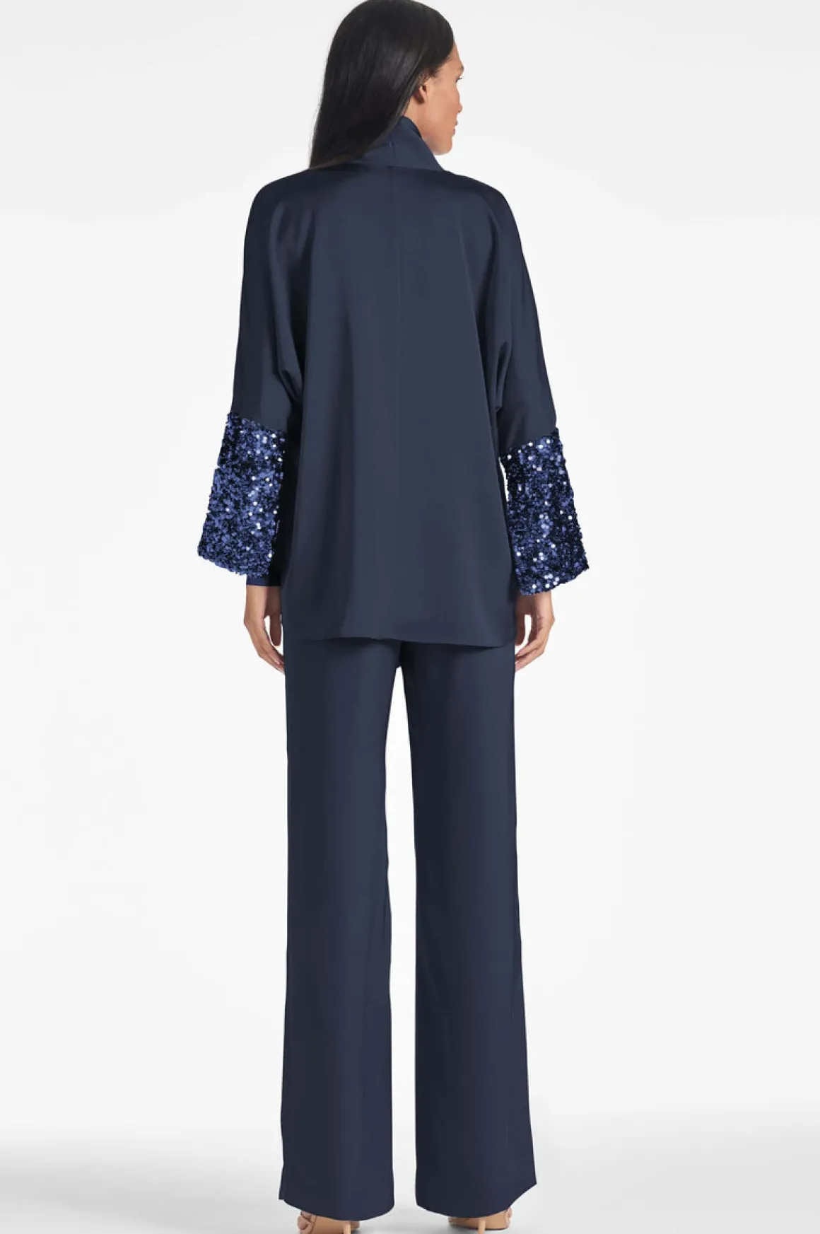 The Reid Top is a stylish, easy-to-wear, relaxed fit statement piece. Perfect for any time of day, from a day at the office to a night out, with a self tie at the neckline and sequin detailing on the sleeve to add that extra shine, Reid is a standout. Pair back to the matching Alli pants or with your favorite jeans or leather.