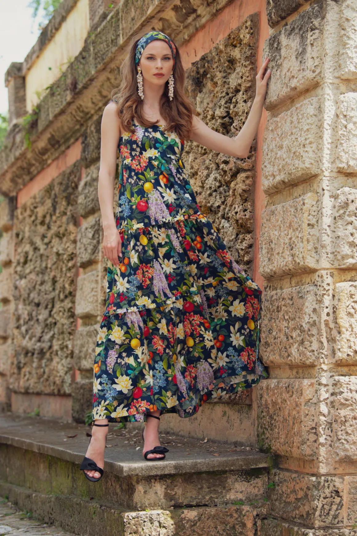 Say ciao to your new favorite dress. The Giorno, seen here in our Alto Giardino print, is made of 100% cotton with subtle ruffle detailing at the straps and throughout the bodice. This dress is easy but fabulous, versatile but special – wearable glamor embodied.