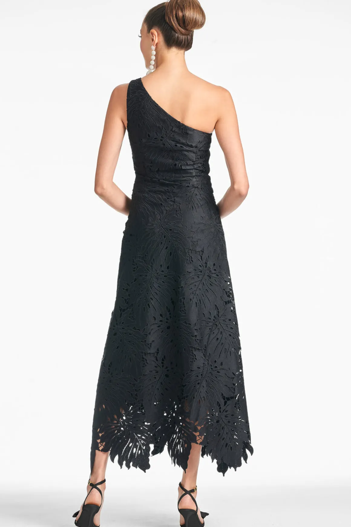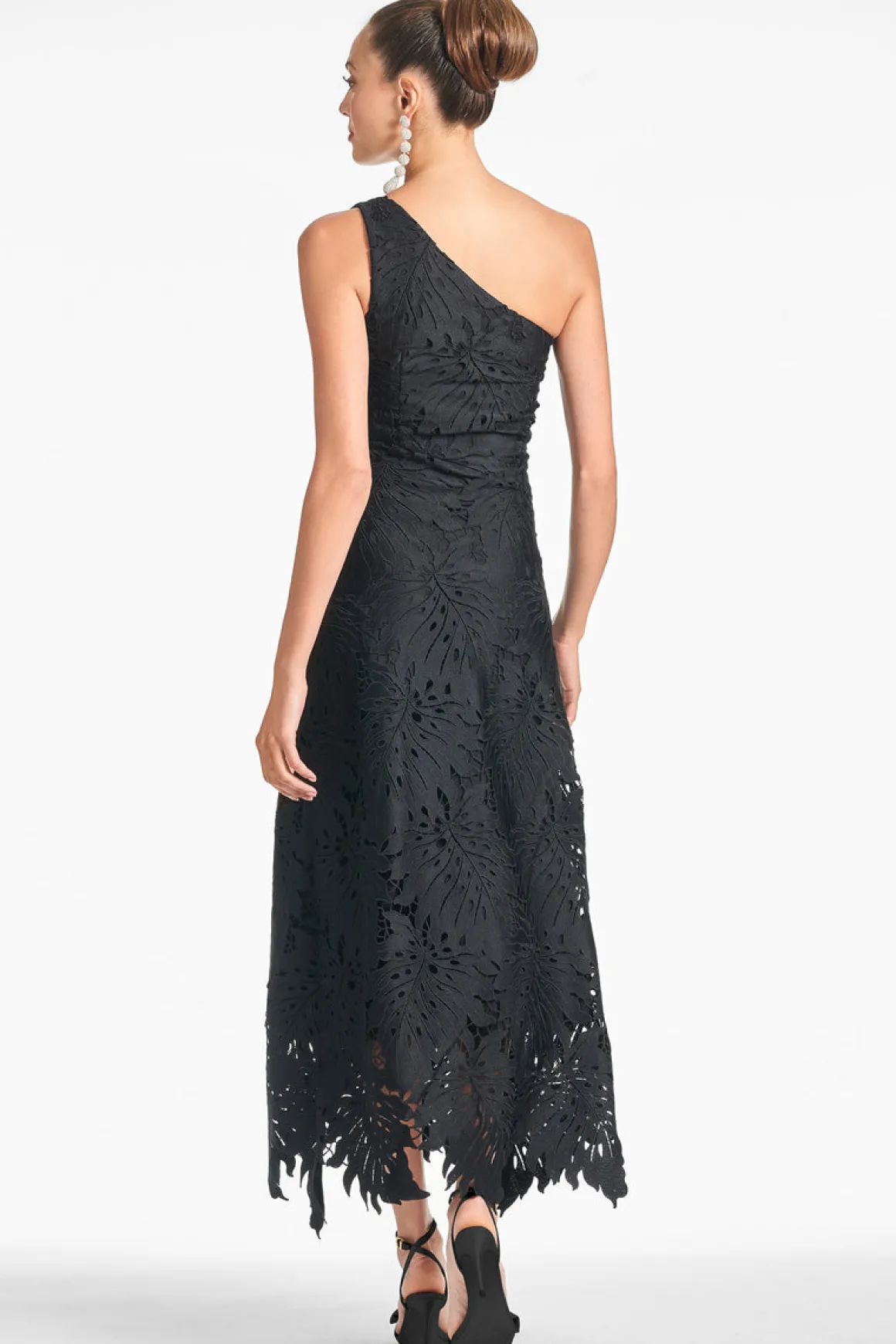 Marzia is a special one. Between the one shoulder silhouette and the all-over palm leaf lace, she takes the traditional black dress up a few levels. You can dress her up with heels and statement earrings for a formal event, or throw on a pair of sandals and a bold lip for date night. This dress is as wearable as she is fabulous.
