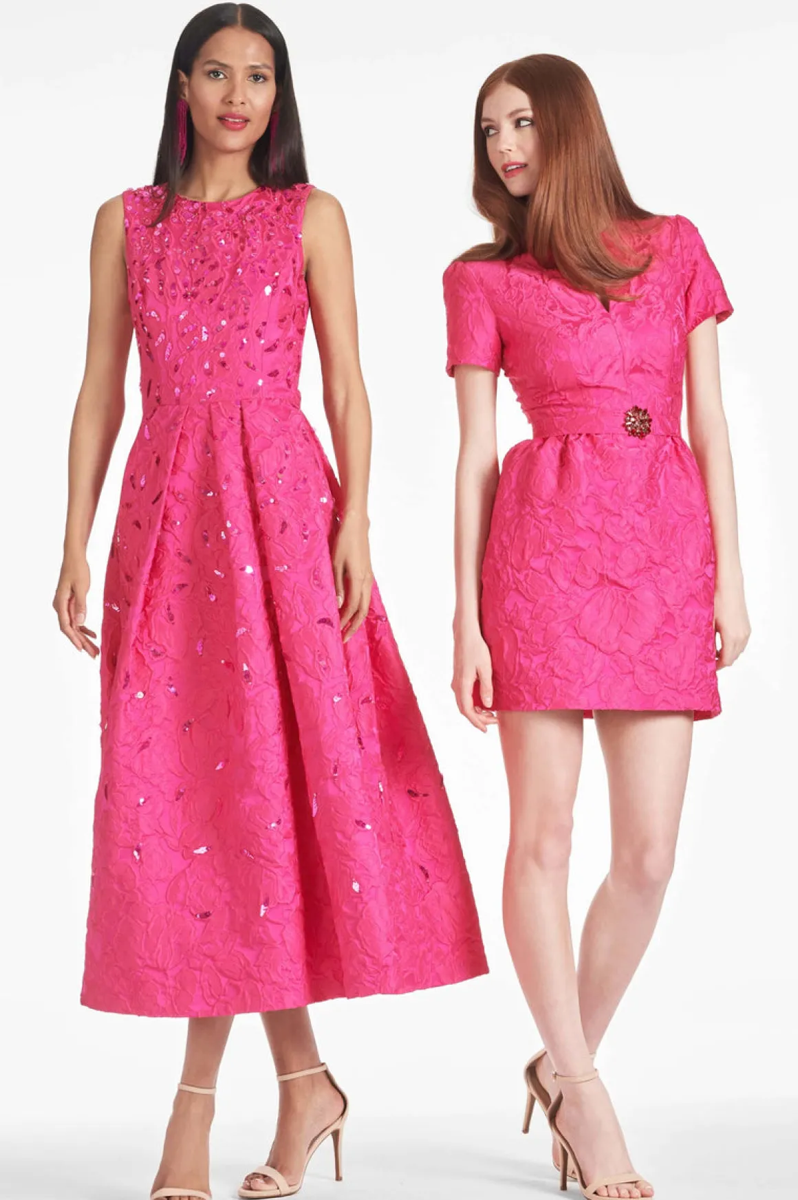 The Rue Dress is perfect for any season. Crafted from pink cloque, this mini dress has short sleeves and a belted waist. It’s the perfect cute look for work, dinner, or a party, and can be styled in many different ways.