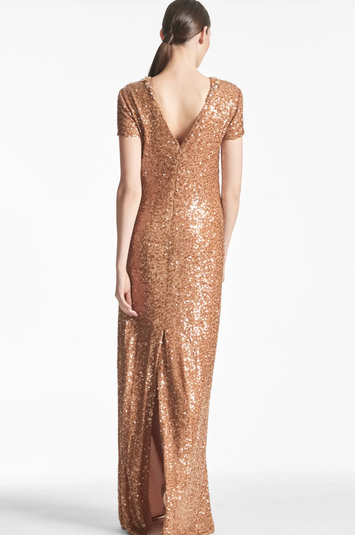 The Shiloh Gown is a gorgeous vision of luxury. A classic column cut with intricate embellishment at the neckline accented with glimmering sequins exude sophistication and elegance. The lovely honey color complements all skin tones, while the short sleeve coverage offers a timeless look with a modern statement. Make your next event unforgettable in the Shiloh Gown.