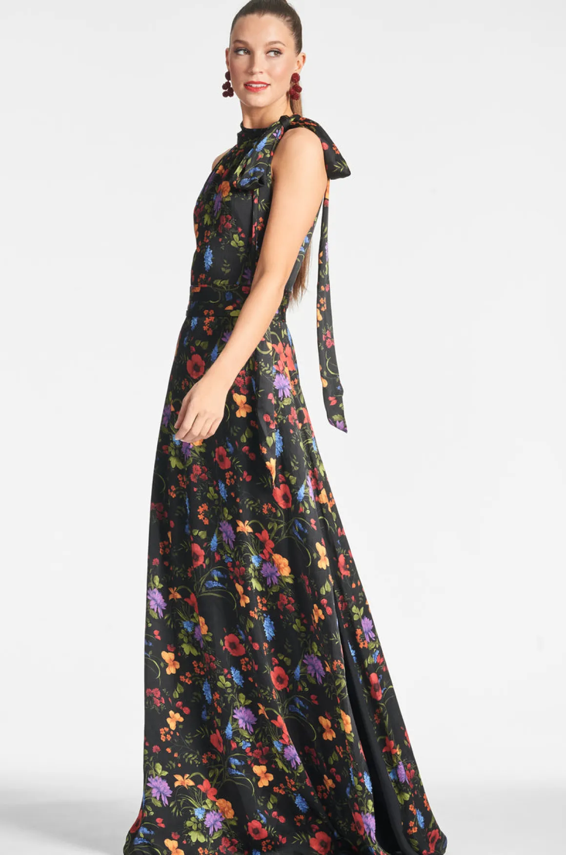 Kayla in Noir Wildflower is simple yet romantic. She’s an elegant maxi dress with a self-tie at the neckline and a stitched-on pleated waistband that hits at the true waist for the most flattering shape. We design all of our dresses in the Essential Social collection with the intention that they can be enjoyed again and again. A timeless dress should be worn often and well.