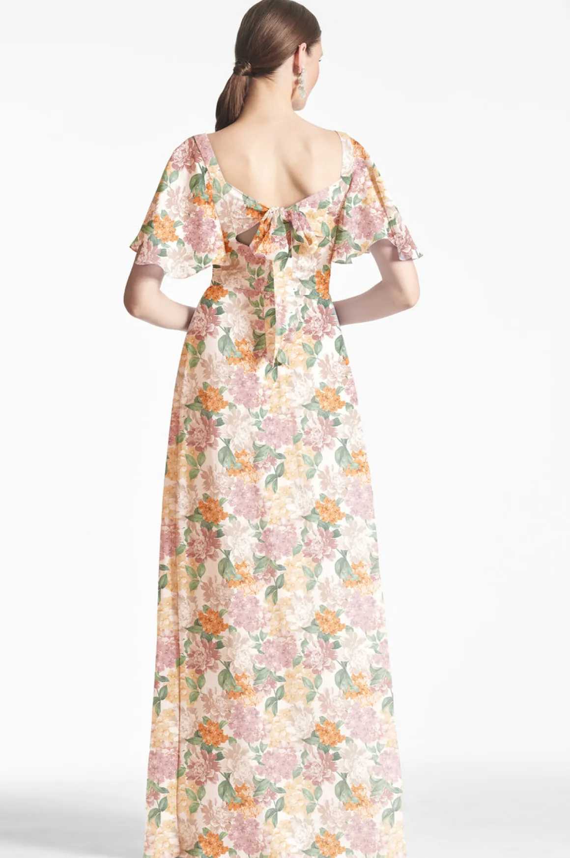The Aurora Gown is the perfect choice for your bridesmaids to look and feel their best on your big day. The flattering silhouette and flutter sleeves give them a classic, timeless look.
