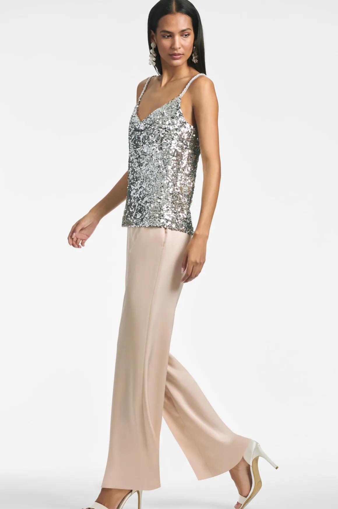 All tanks aren’t created equal… Leta is in our all-over stretch sequin has a cowl neckline and pearl straps making her the perfect pairing to our Talisa skirt. However, a top like this can’t be contained and will beg to be worn back to your favorite denim or chic charmeuse.
