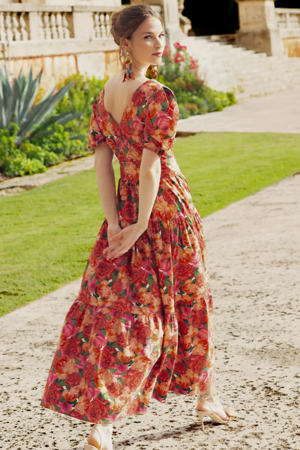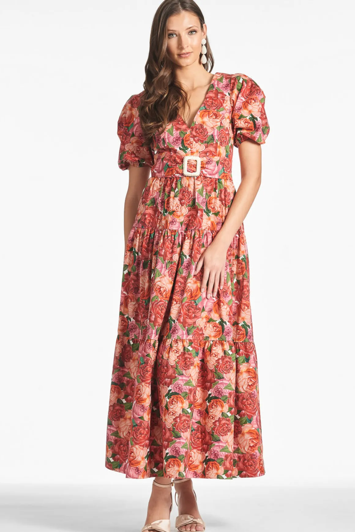 Carina is the midi that every woman’s closet needs. She’s made of breathable stretch cotton and comes with a matching raffia-accented belt to flatter in all the right places. The allover rose print makes her the perfect frock for your next summer soiree or warm weather vacation.