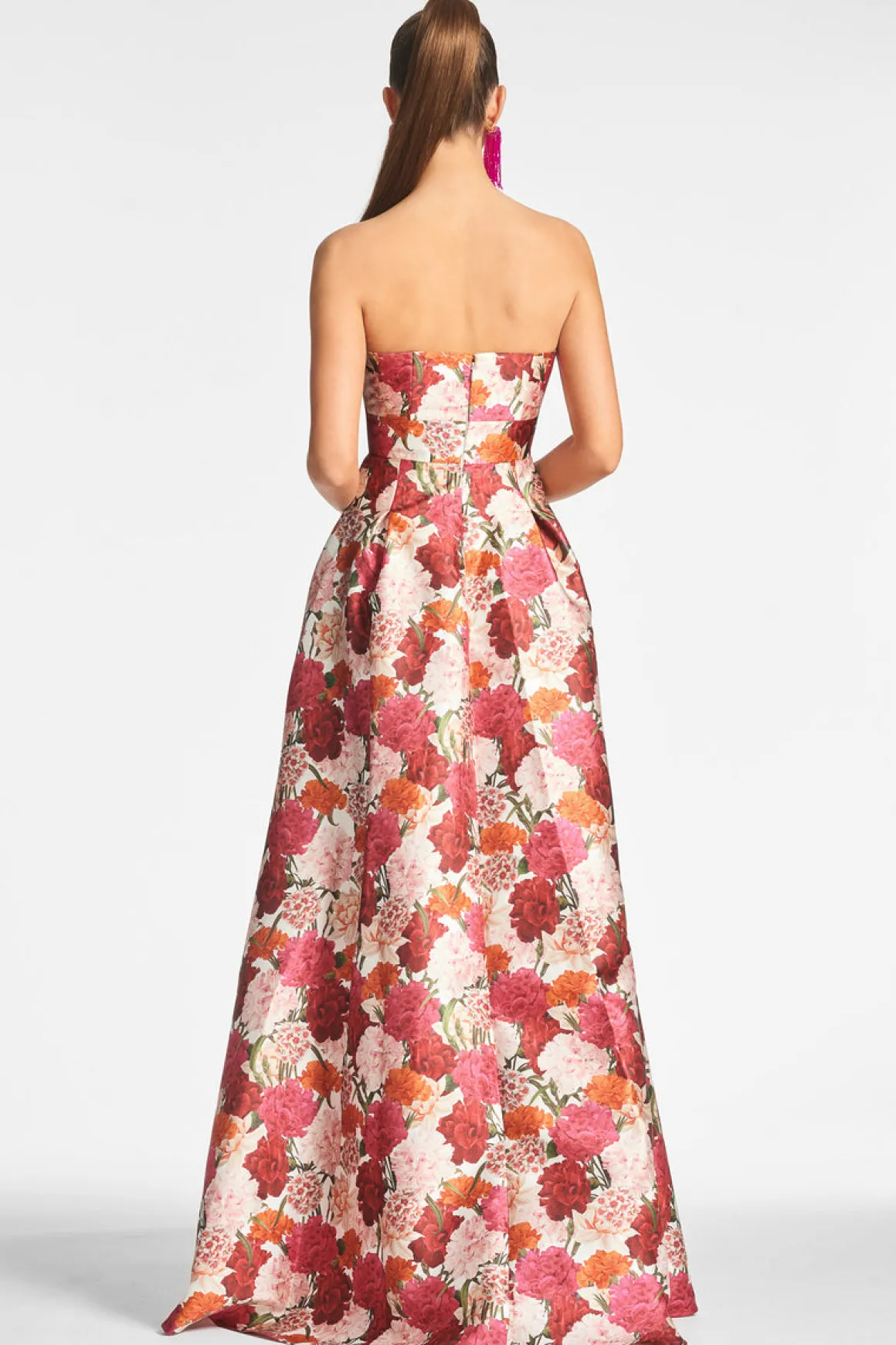 Giovanna is the ball gown that flatters in all the right places. Featured in an all-over floral print, she adds a touch of something special to an otherwise classic silhouette. Opt for natural makeup and throw on a pop of color clutch (On the Rocks in cerise, perhaps), and you have your next wedding, gala, or event look perfected.