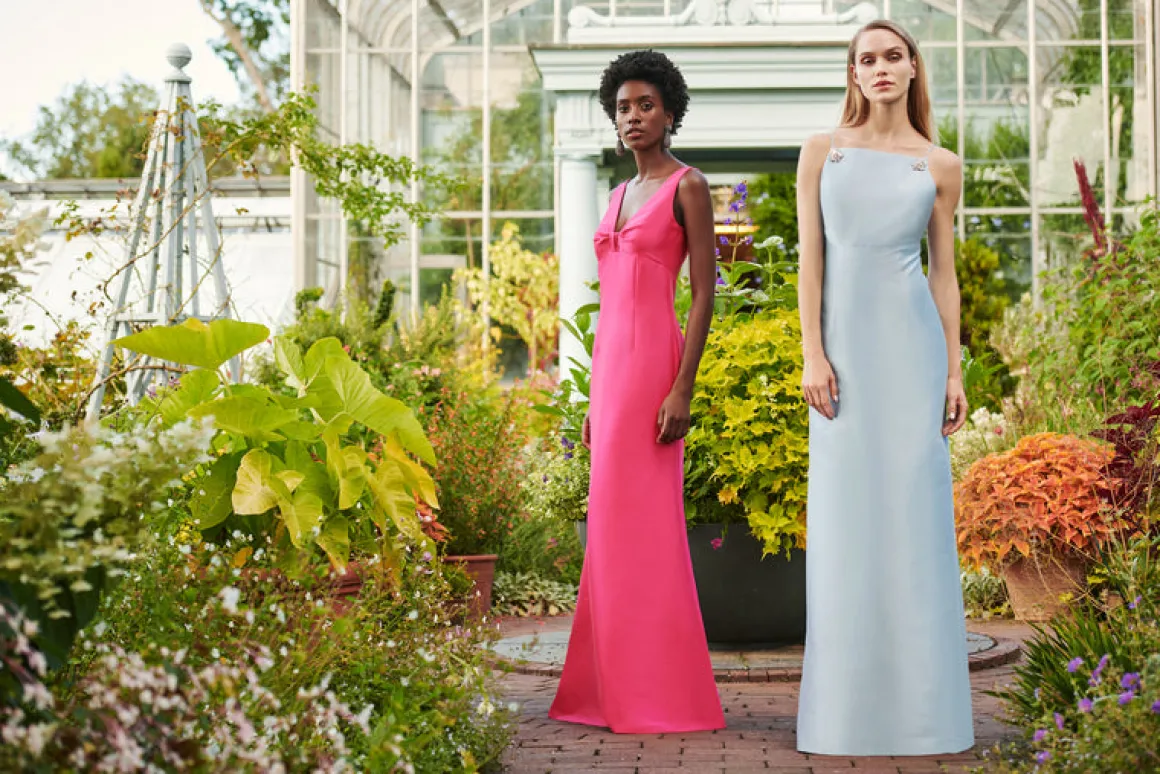 Sometimes the best answer is the most simple one, and that is true for the Pryce gown. A stunning column dress in stretch Mikado, she’s delicately adorned with crystal clips in a stunning shade of glacial blue.