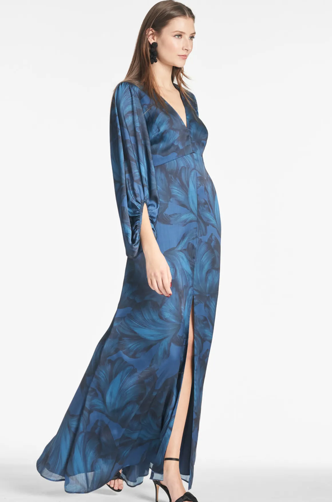 Jenny in Tonal Petal is a gown that knows who she is: elegant, understated, and sophisticated. Featured in satin crepe, the empire waist falls to a perfect A-line while the collapsed crescent sleeves add a subtle yet unique element to the gown’s overall design.
