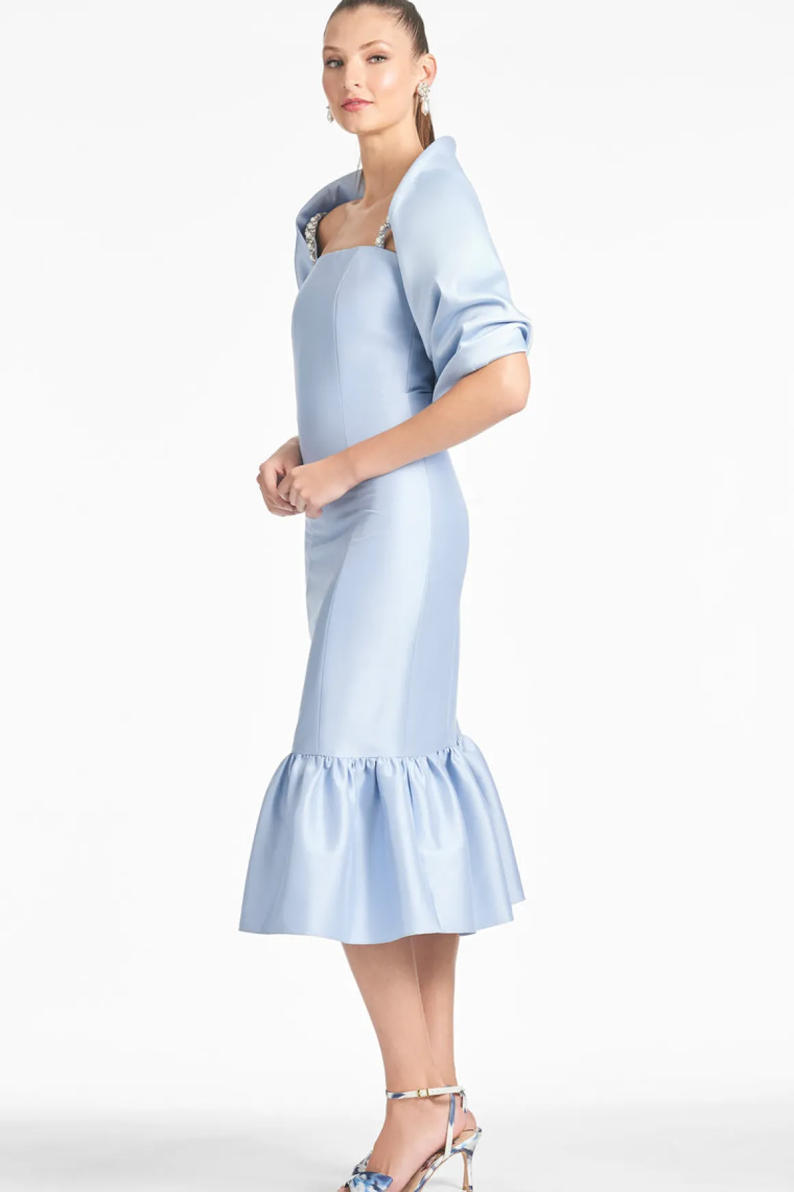 Introducing our Hug Shawl in glacial blue. Whether you’re looking for more modesty or for an added element to your look, this is the hero piece of the season. She’s made of rich Mikado and fits around you like a warm hug.