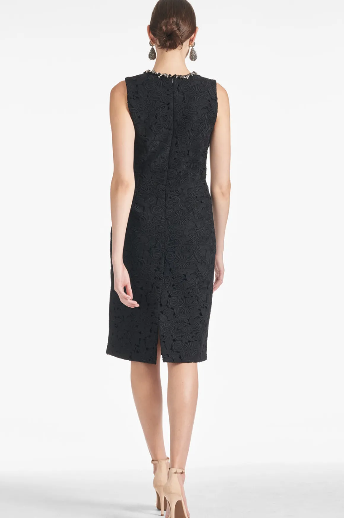 The Anna Dress – Noir is the perfect combination of timeless elegance and feminine grace. With its embellished neckline and lace body, the dress is the perfect length, color, and silhouette for any special occasion.