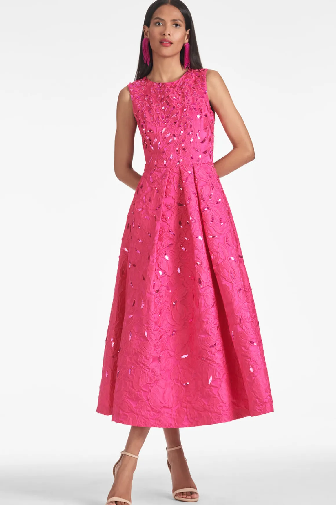 The Ashley Gown is perfect for any occasion. This tea-length silhouette flaunts in fuchsia and is sure to stand out. Comfortable and stylish, this sparkling gown will make heads turn. Ashley Gown is designed to flatter any figure. The eye-catching construction and comfortable fit make this gown a must-have for any wardrobe.