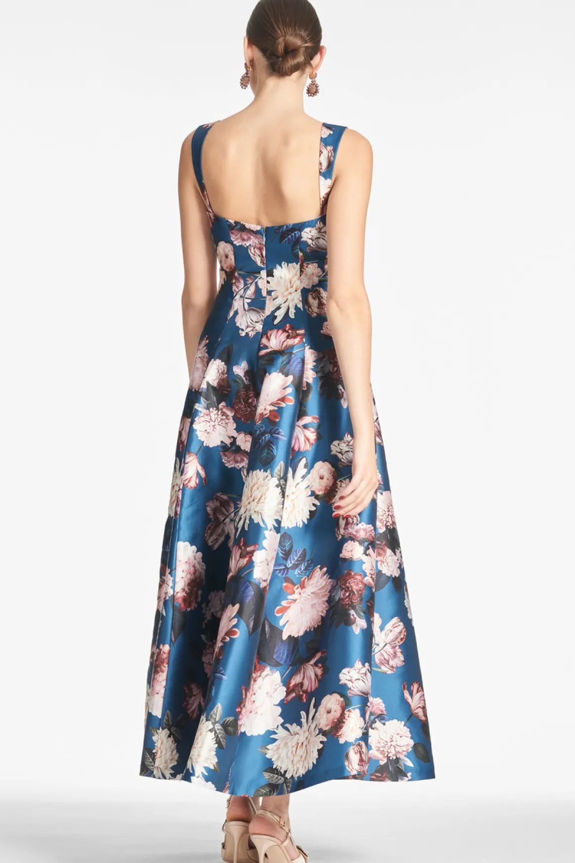A classic simply put. Audrey is what was once referred to as a party dress before cocktail dresses became the common term. Her silhouette is an elegant fit and flare, and the neckline is a softly squared scoop. The fabric is what heirlooms are made of, the dress that no one forgets and is inevitably passed down. Featured in floral Mikado, it is nothing less than luxurious, the sweep of the skirt dramatic but flattering, and at back a discreet bow is the final detail to complete the dress.